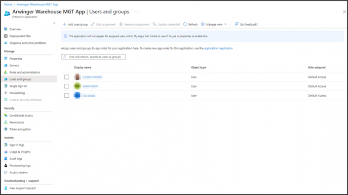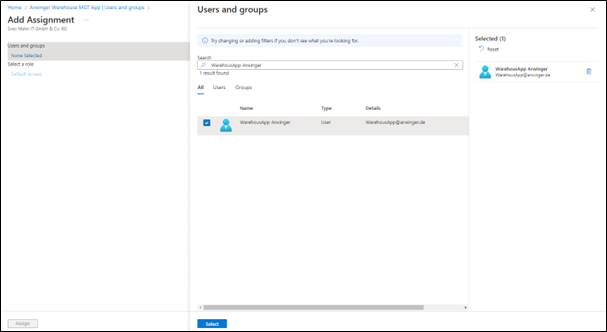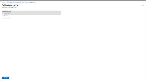 Als Vorbedingung muss ein Entra-Benutzer existieren und auch in Dynamics 365 Finance und Supply Chain Management mit der entsprechenden Rolle (Warehouse mobile device user) als User angelegt sein.