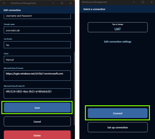 Einrichtung der Verbindung in der Warehouse Management Mobile App