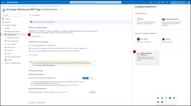 5. Auf derselben Seite klicken Sie auf Plattform hinzufügen (Add a platform) und dann auf Mobile und Desktopanwendung.